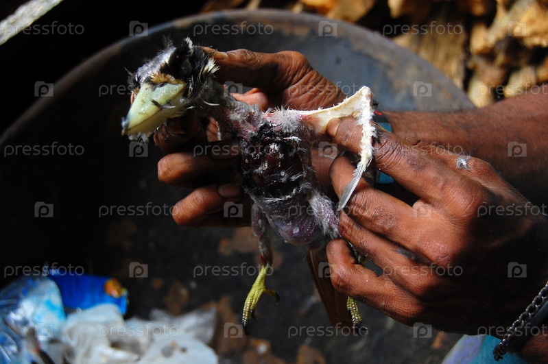 Мертвая дикая птица в руках перед приготовлением, деревня в Папуа-Новой Гвинее