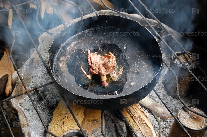 Жареная на сковороде дикая птица, деревня в Папуа-Новой Гвинее
