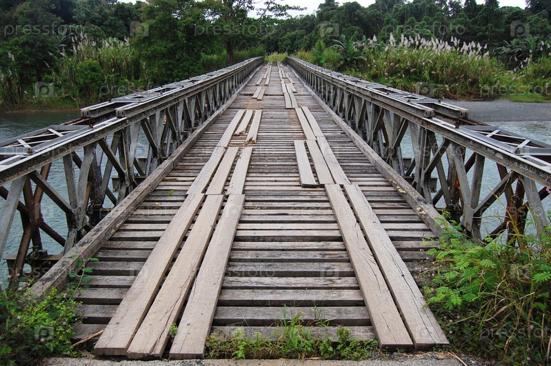 Деревянный мост через реку в Папуа-Новой Гвинее