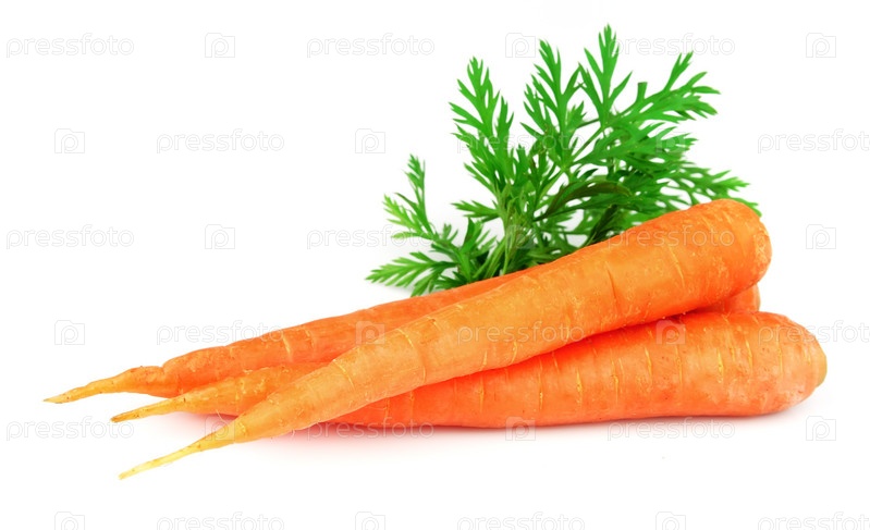 Сладкая морковь с листьями на белом фоне