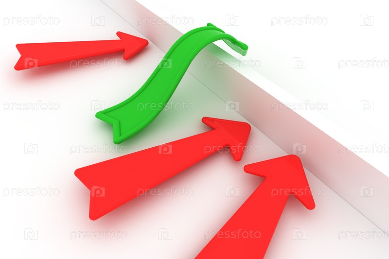 Зеленая стрелка преодолевает барьер, в то время как красные стрелки останавливаются