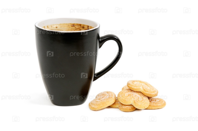 Чашка кофе и печенье, изолированные на белом