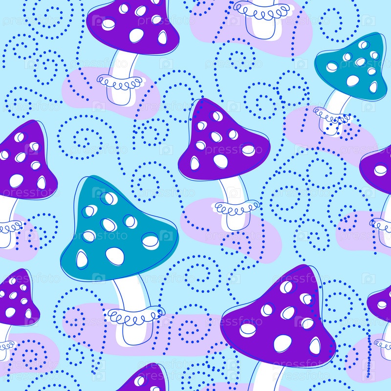Бесшовный шаблон с яркими милыми мухоморами