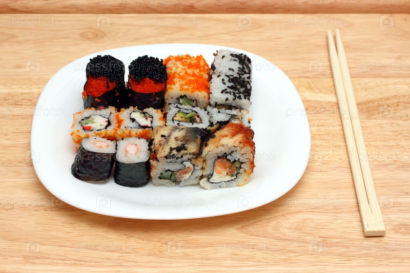 Японская кухня. Набор роллов на тарелке