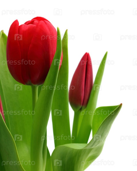 Букет из красных тюльпанов крупным планом, изолированный на белом фоне