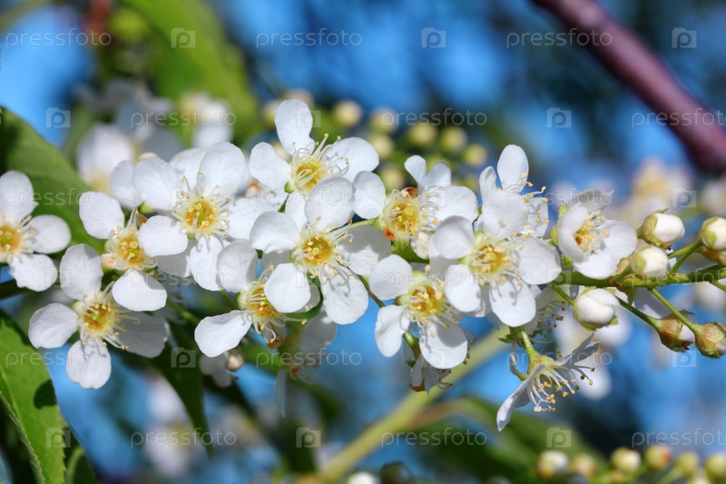 Цветущая ветка черемухи крупным планом