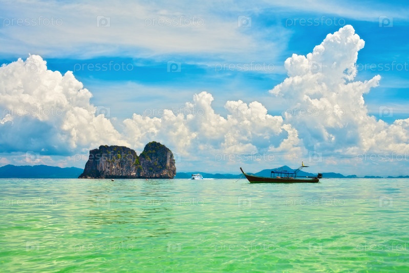 Солнечный берег и тайская традиционная лодка, Таиланд