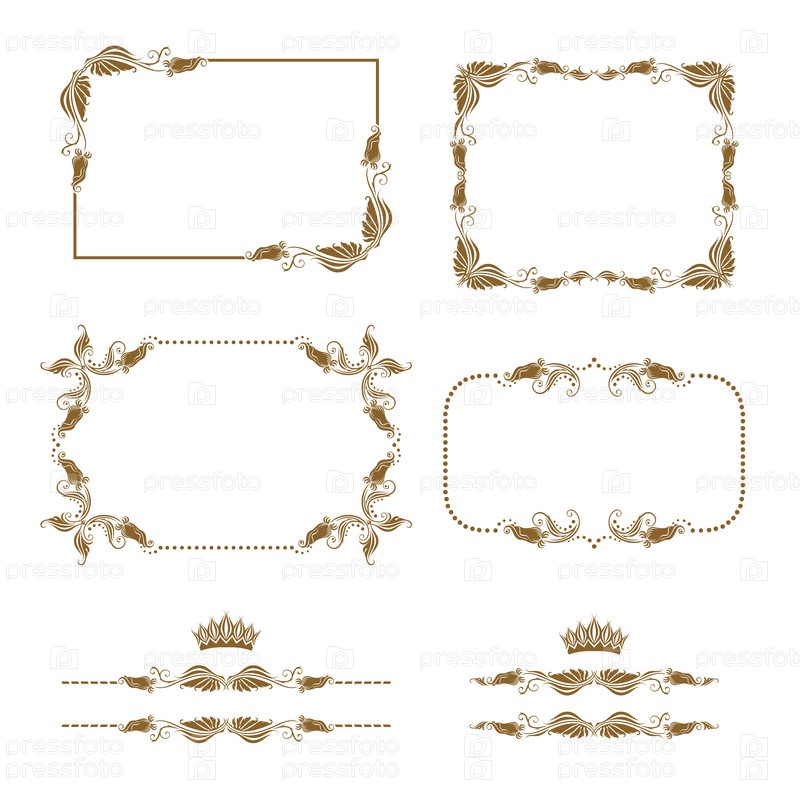 Векторный набор декоративных горизонтальных элементов, границ, рамок
