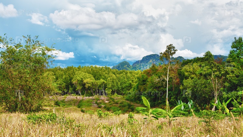 Зеленый пейзаж в Таиланде в летний день