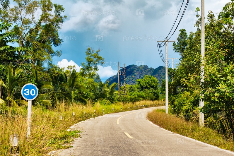 Асфальтированное шоссе в джунглях, Кох Ланта Ной, Таиланд
