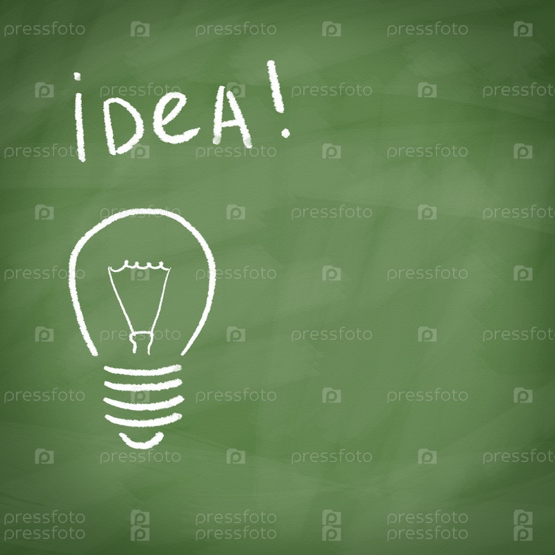 Лампа и слово ИДЕЯ написаны мелом на доске