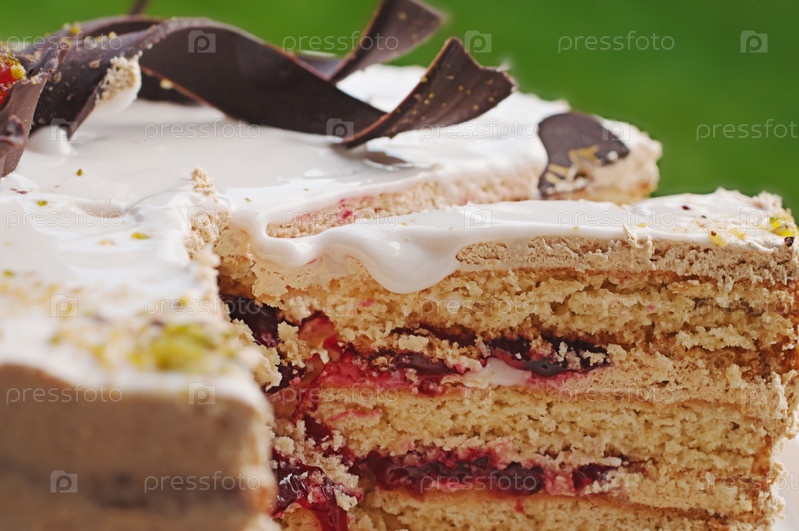 Кусок торта со стекающим кремом