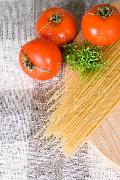 Спагетти и помидорами на столе