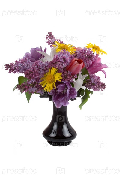 Букет весенних цветов в вазе на белом фоне