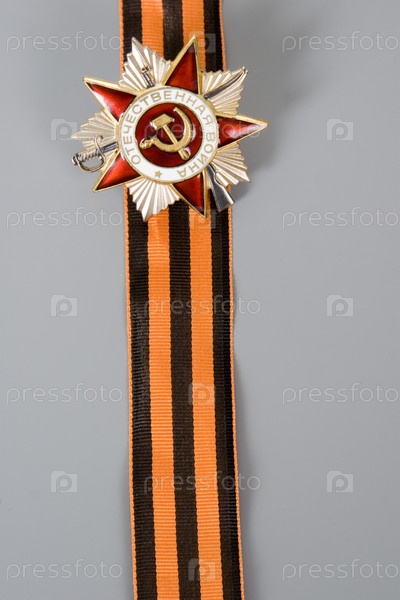 Орден Отечественной войны на ленте Святого Георгия на сером фоне