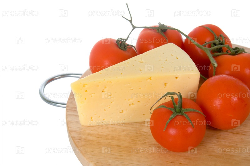 Сыр и помидорами на столе