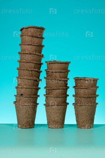 Торфяные горшочки на синем фоне