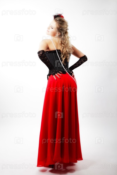 Женщина в длиной красной юбке