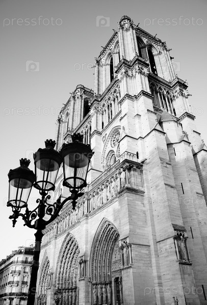 Нотр-Дам-де-Пари, Франция. Черно-белое изображение