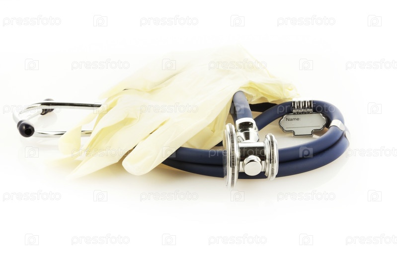 Медицинские перчатки и синий фонендоскоп для обследования пациентов