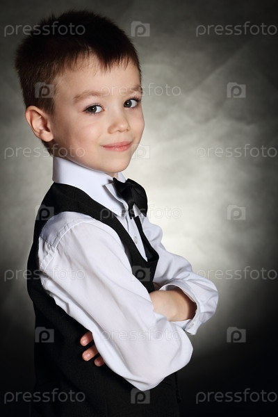 Маленький мальчик с галстуком-бабочкой на черном фоне