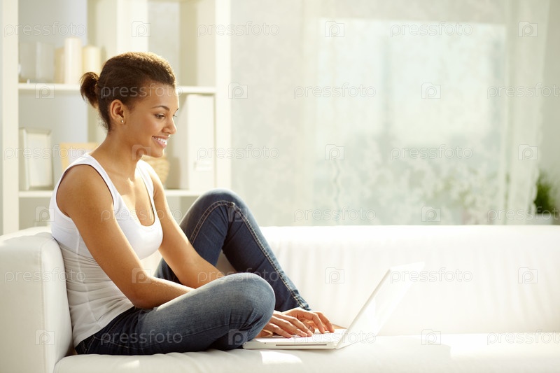 Девушка работает в интернете
