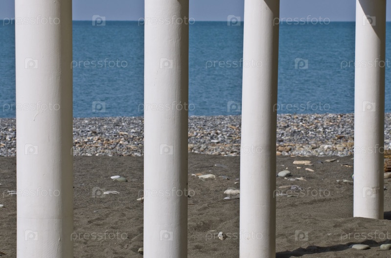 Белые колонны на фоне синего моря