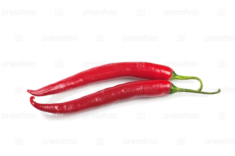 Два красных острых перца, изолированные на белом фоне