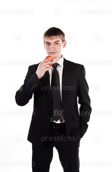 Деловой мужчина с красным яблоком