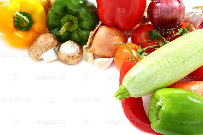 Грибы и овощи на белом фоне