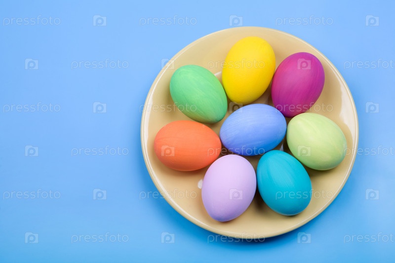 Изображение нескольких цветных яиц, помещенных на тарелку