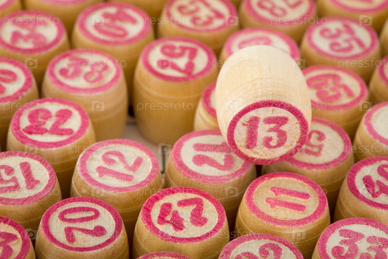 Деревянная бочка под номером тринадцать на другой деревянной бочке для лото (бинго)