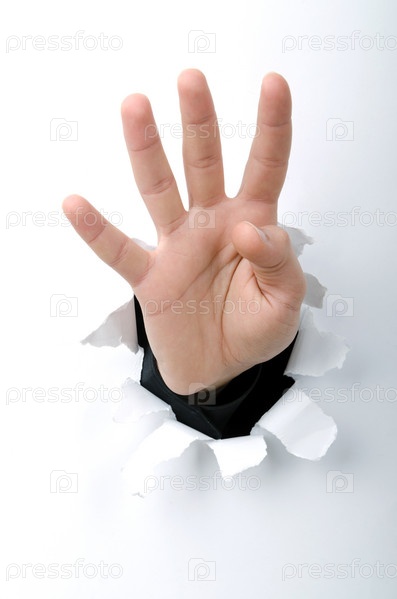 Четыре! Рука в отверстии в бумаге