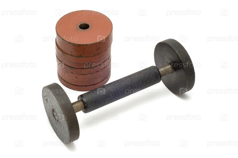 Объект серии на белом спортивном инструменте - гантели