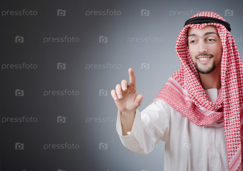 Араб нажимает на кнопку на экране