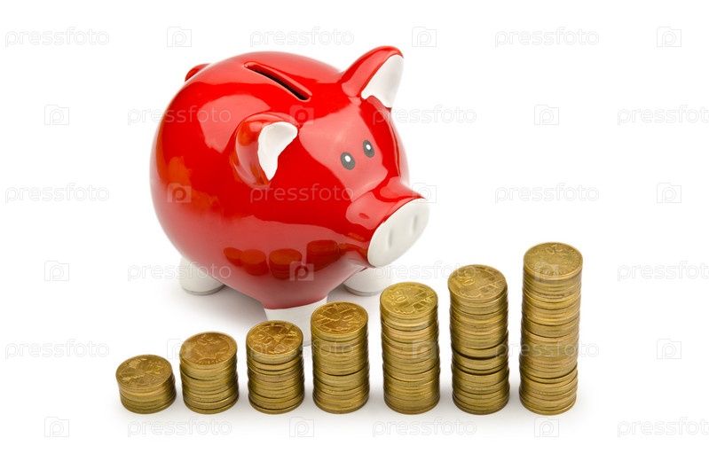 Золотые монеты и копилка
