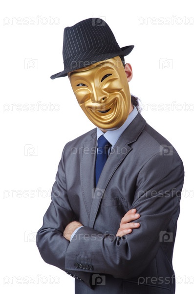 Предприниматель в маске на белом фоне