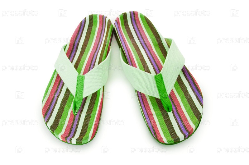 Яркие летние шлепанцы на белом фоне