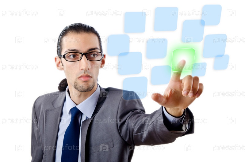 Бизнесмен нажимает виртуальные кнопки