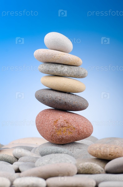 Сбалансированная стопка гальки на цветном фоне