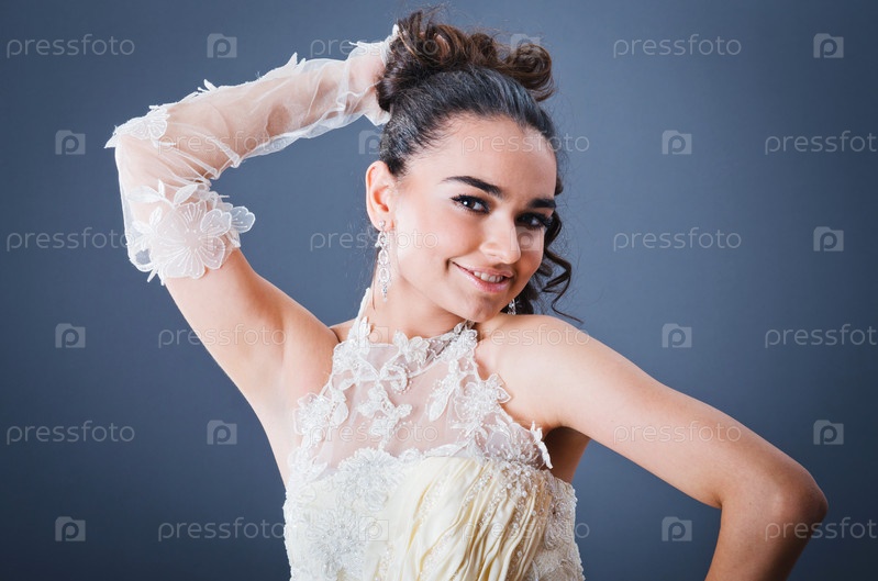 Невеста в свадебном платье в студии