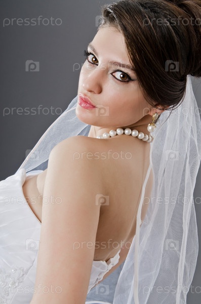 Невеста в свадебном платье в студии