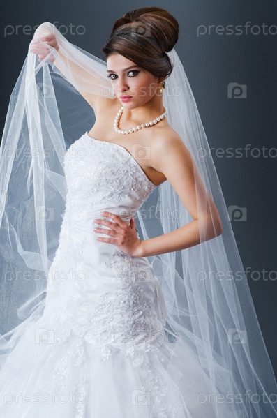 Невеста в свадебном платье в студии