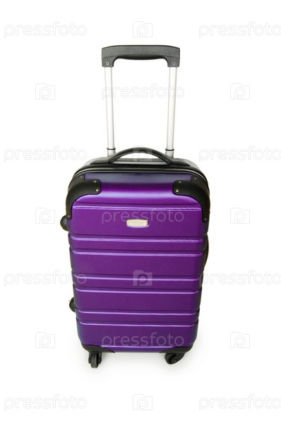 Фиолетовый багажный чемодан на белом фоне