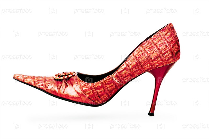 Красная женская туфля на белом фоне