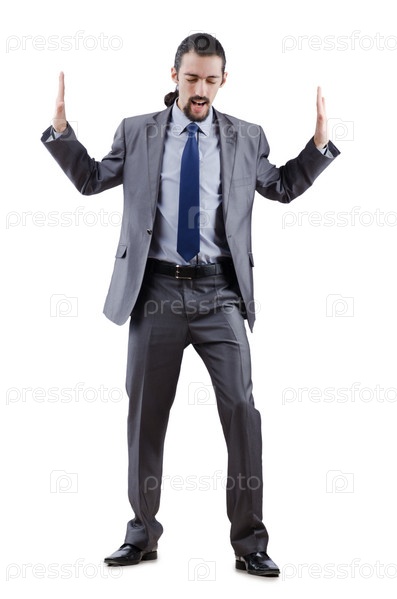 Бизнесмен раздвигает невидимую стены на белом фоне