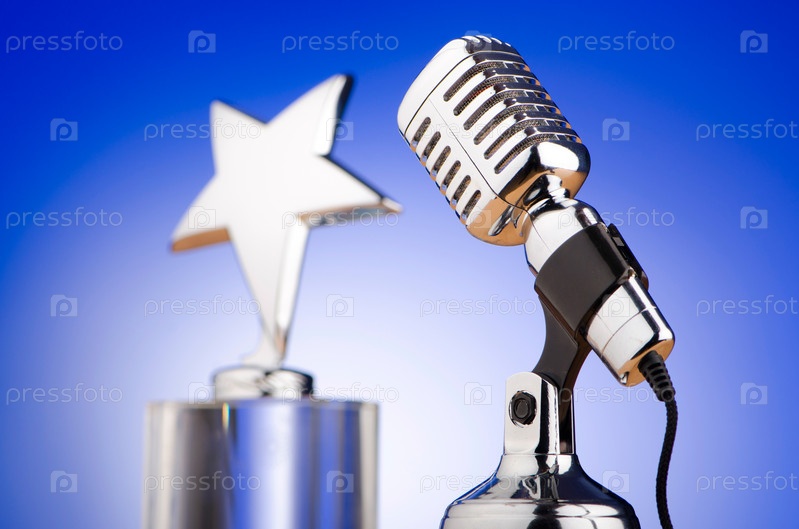 Студийный микрофон и награда в виде звезды на синем фоне