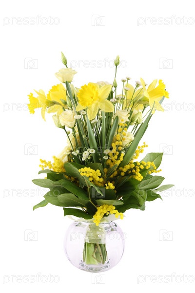 Букет желтых цветов в вазе на белом фоне