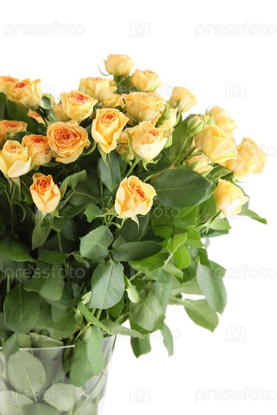 Букет из желтых роз на белом фоне