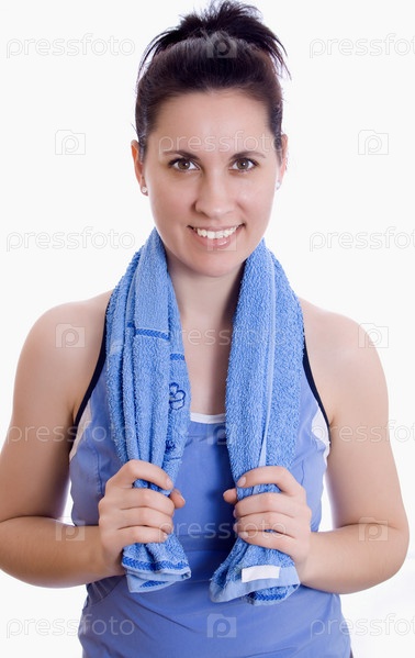 Женщина в спортивной одежде и с полотенцем